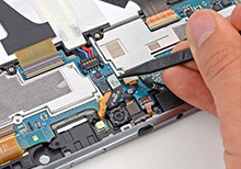 Сотрудник нашего сервисного центра проводит работу: заменяет проблемную деталь работоспособной фирменной деталью